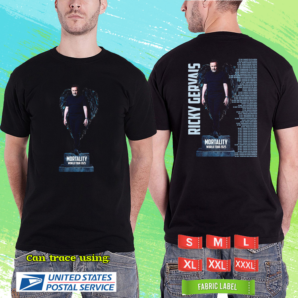 RICKY GERVAIS MORTALITY WORLD TOUR 2025. RICKY GERVAIS. UNISEX BLACK TEE RD01
