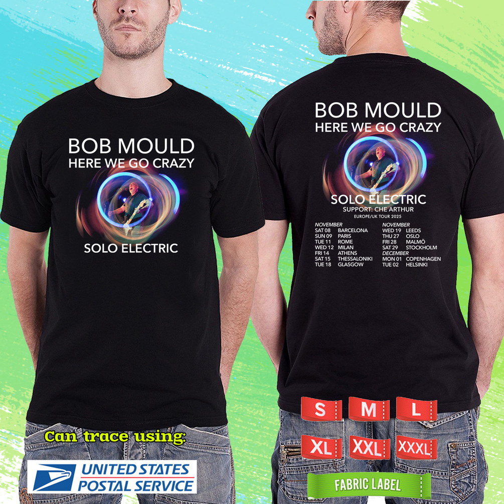 BOB MOULD HERE WE GO CRAZY SOLO ELECTRIC TOUR 2025, BOB MOULD, UNISEX BLACK TEE RD01